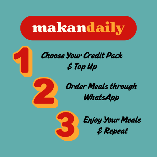 MakanDaily Credits are used exclusively for MakanDaily meal orders and cannot be exchanged for cash or transferred to other users.